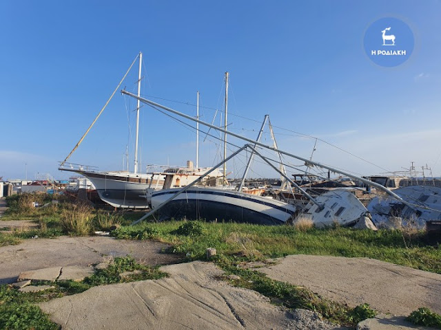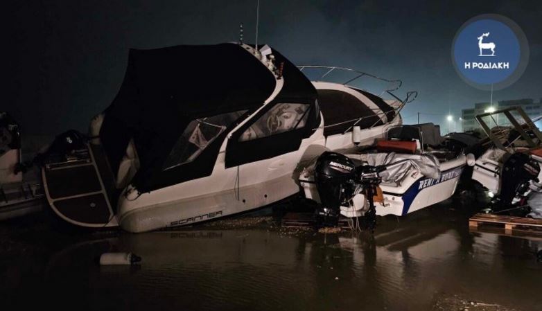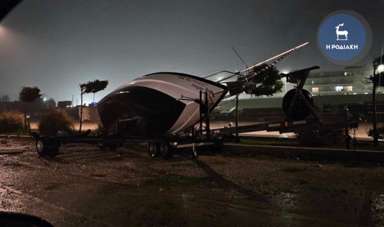 Изкоренени дървета, повдредени постройки и обърнати лодки са част от вредите, които е провокирало мощно торнадо на гръцкия остров Родос.