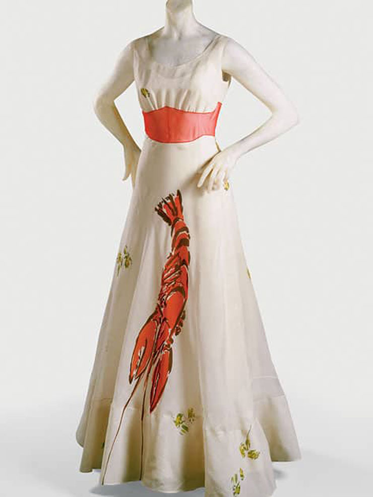 Американската хубавица Уолис Симпсън, която се трансформира в секси бомбата, раздрусала устоите на английското кралско семейство, театралничи в необикновено красивата рокля, основана от партньорството на стилната дизайнерка и испанския талант Салвадор Дали. И до момента изящната рокля е считана за най-хубавия пример на артистично партньорство в тази посока.