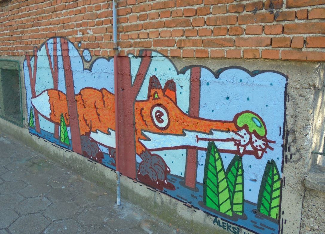 На графит в " Града на 100-те войводи " виждаме Кума Лиса, която умерено пристъпва из гора. Тя е изобразена от създател, който преобразява и други обществени места.