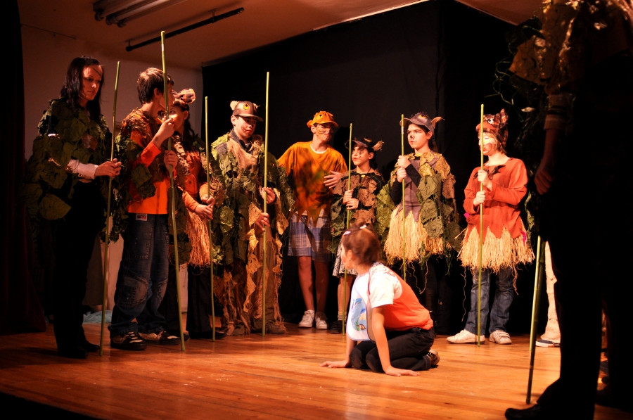 Първата огромна самодейност на театъра е обиколка на 16 интерната (Домове за деца, лишени от наставнически грижи) – още през 90-те години на XX век. " Бяхме с децата от кафето до ракията ", спомни си госпожа Янева, до момента в който в границите на информационно-образователното ателие " Културното разнообразие в Европа – пътят напред ", част от плана " EU COOLтура ", разказваше и даваше образци по какъв начин с изкуството променяш животи. " С кутии, с каквото имахме на разположение, учехме децата да вършат представления – и бяха щастливи, щастливи ", сподели още госпожа Янева. Именно поради тези деца хората, занимаващи се с театъра, минават през редица образования – с цел да могат да оказват помощ повече на изоставени от родителите си деца.