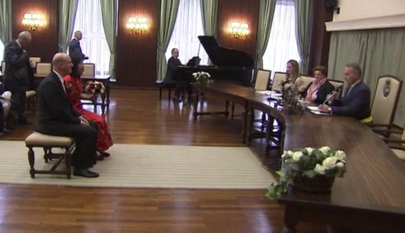 Събитието се излъчва онлайн в Ю Тюб и по този начин близки и другари на младоженците, които не участват, могат да споделят момента - от различен град или даже от различен континент. Услугата коства 10 евро.