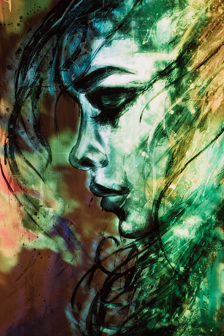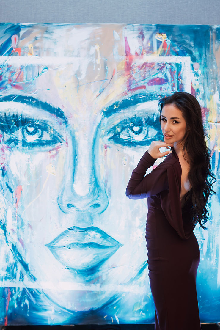 Включени са 15 портрета, основани през последната година с акрил и смесени техники. В тях женското лице е показано като знак на вътрешно разрастване, освобождение и промяна. Темата за „ рамката “ е развита като метафора за упованията и функциите, наложени на дамата, както и за момента, в който тя стартира да ги разчупва и излиза оттатък тях.