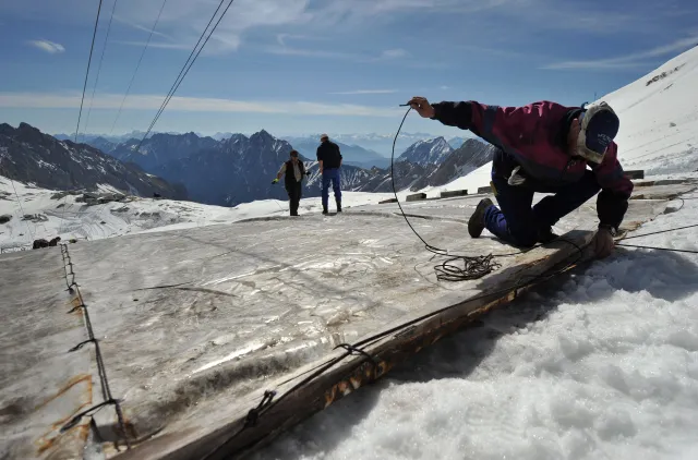 Покриват ледници с платнища през лятото, с цел да спрат топенето
