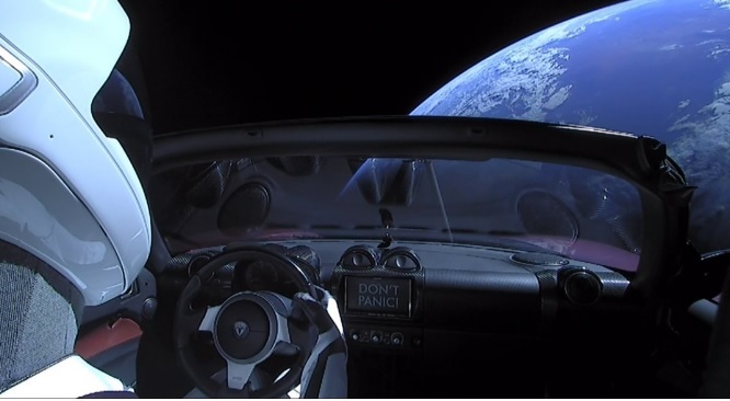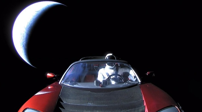 Самата кола е необикновен обект в космоса, а преди 5 години изключително внимание притегли манекен наименуван Starman, облечен в скафандър, който беше подложен зад кормилото на автомобила. Тоест бе основана симулация за истинско пътуване с кола, само че в космоса.