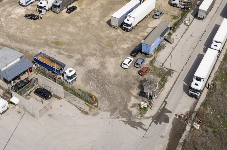 Проверка на на място сподели, че има две бариери – на едната написа „ ПИМК Вход “, а на другата – „ ПИМК Изход “. Видно е, че двата имота се употребяват като паркинг от транспортната компания. Видео от дрон също демонстрира по какъв начин парцелът е захласнат.