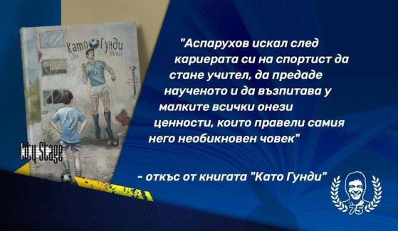 На 3 май от 18:30 часа в City Stage в НДК пък ще бъде показана книгата " Като Гунди “. Днес управлението на сините ще даде конференция, на която ще обясни детайлности към отбелязването на годишнината на Аспарухов. На 19 август на националния стадион ще се състои другарска среща с Бока Хуниорс за трофея " Георги Аспарухов ".