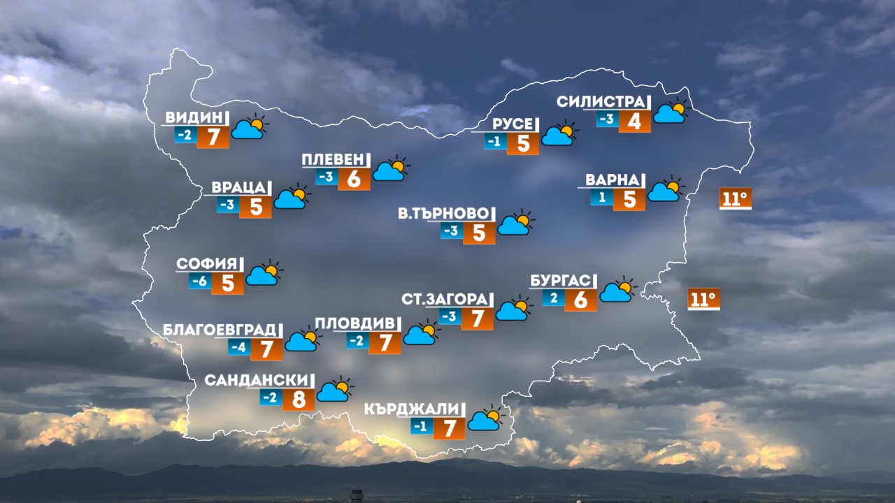 Изпращаме годината със пресен и безоблачен ден. Сутринта в котловините има условия за мъгли. Вятър – по-осезаем в Северна България следобяд и по здрач. След обяд и по здрач облачността от север-северозапад ще се усили, само че превалявания са едва евентуални. Температурите денем – сред 3 и 8 градуса.
