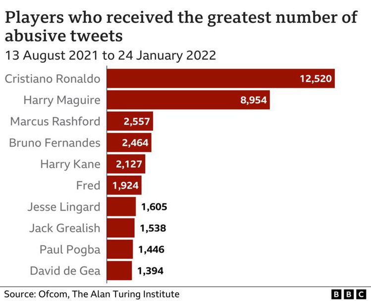 The report has found that 8 of the 12 most abused players played for Manchester United.