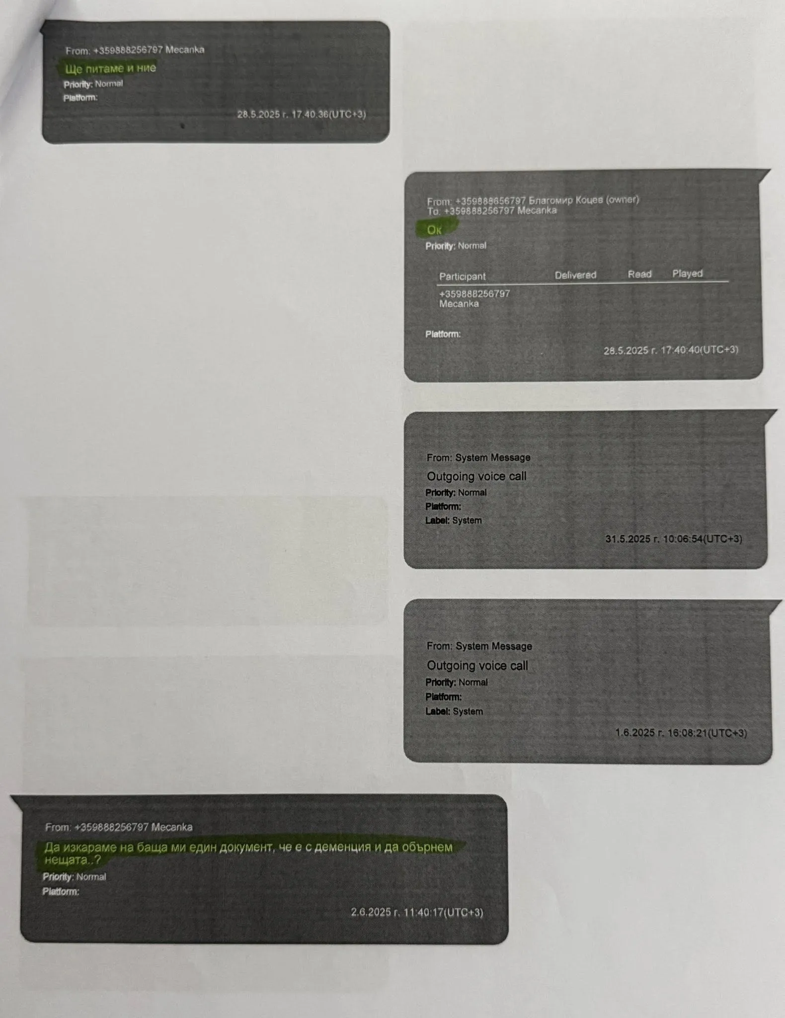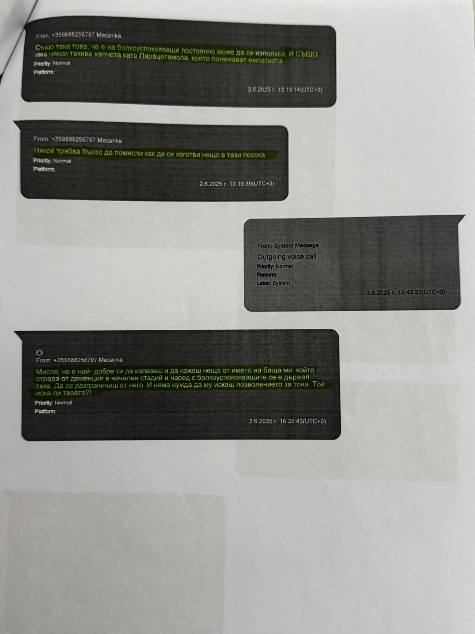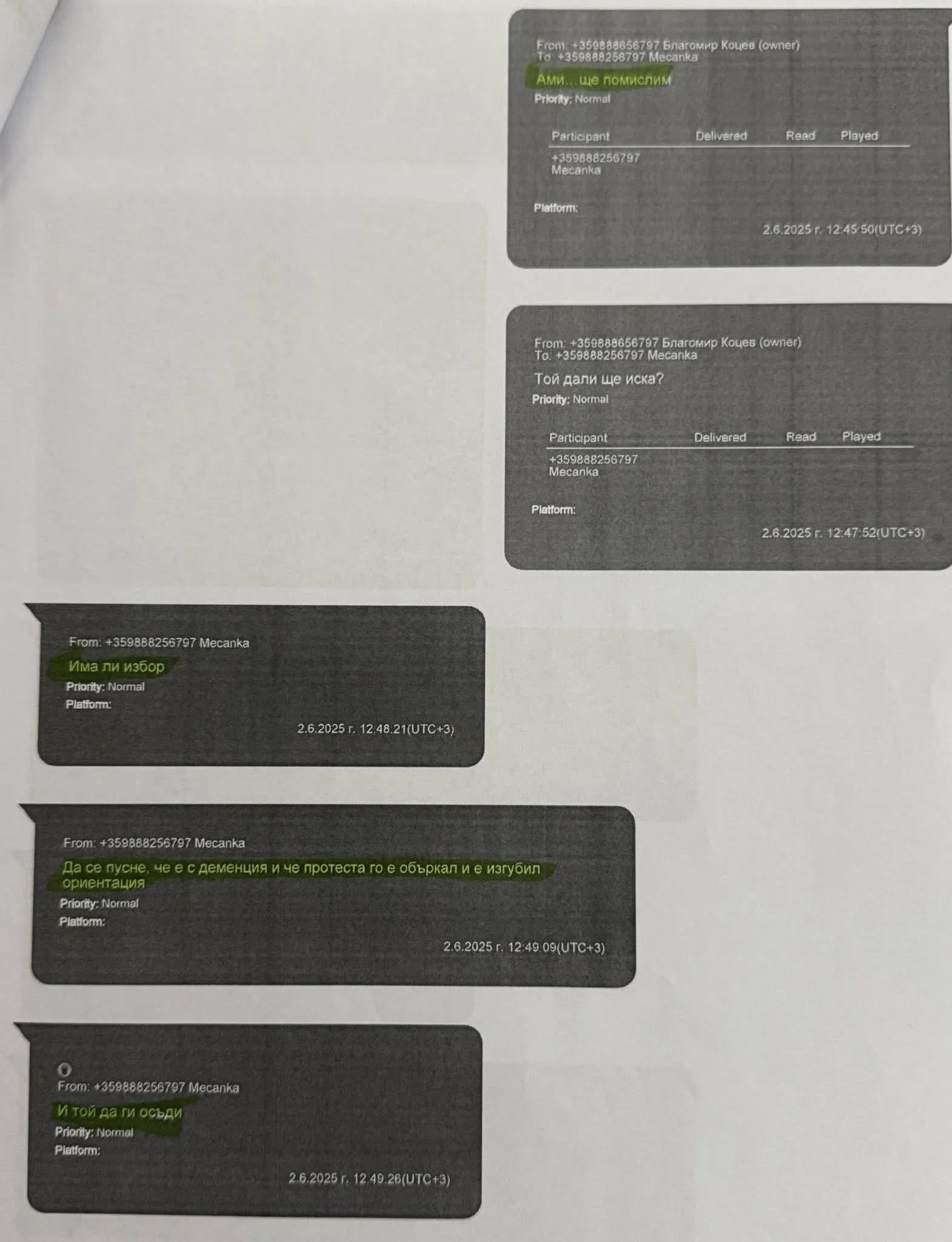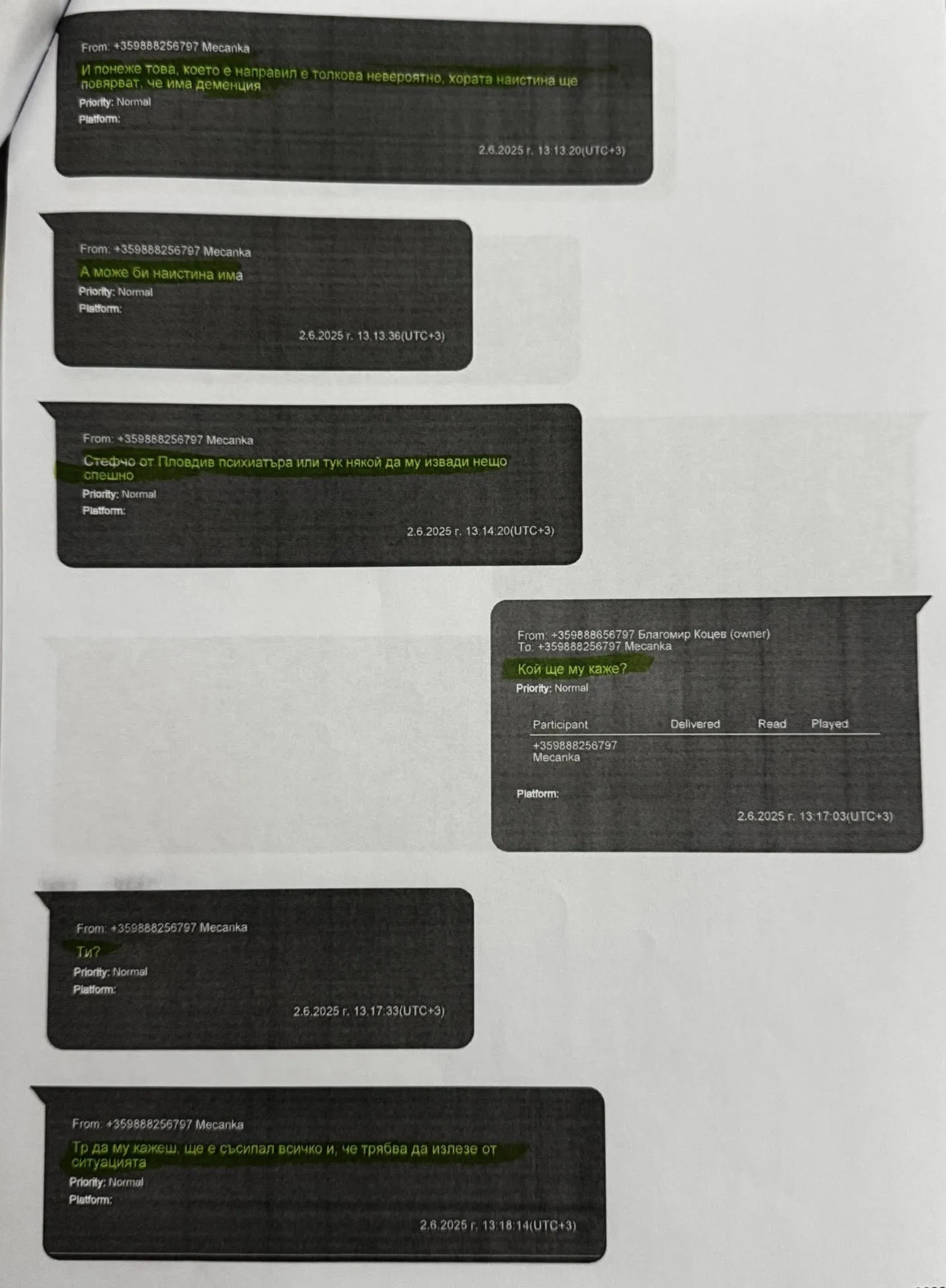 " Да изкараме на татко ми един документ, че е с деменция и да обърнем нещата? " Съобщението е изпратено на 2 юни тази година, ден след случилото се с бащата на варненския, тогава незадържан - кмет.