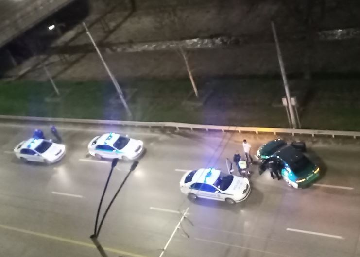 Извънредна обстановка в столицата. Лек автомобил " БМВ " се е завъртял на пътното платно на бул. " Сливница ", на мястото са пристигнали цели три патрулки, които са с пусната светлинна сигнализация.