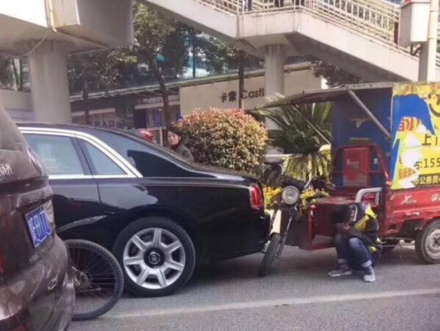 Участници в случая са триколесна машина за транспортиране на артикули и доста първокласен (и надлежно доста скъп) Rolls-Royce Ghost. Произшествието е станало в град Гуйян, който по размерите на Китай не е доста огромен – единствено с 4 милиона поданици. Затова и е цялостно с такива моторни рикши с 3 колела, които транспортират както пасажери, по този начин и артикули за другите магазини и пазари.