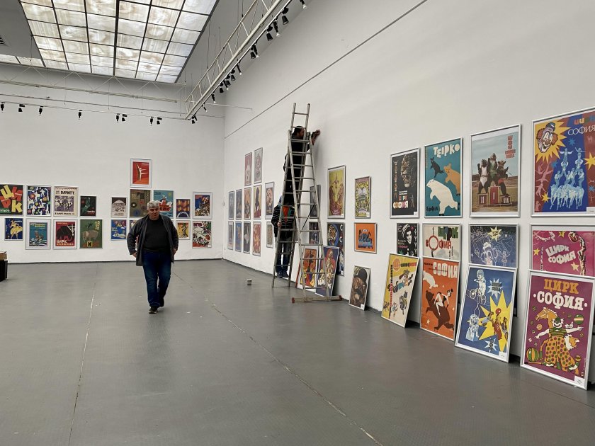 Откриването на любопитната експозиция е довечера, само че пръв екипът на Lupa.bg снима изложбата и журналиста, който ефективно участваше в подреждането на плакатите по стените на столичната изложба „ Райко Алексиев”.