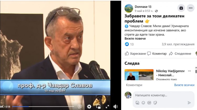 „ Във Фейсбук се появиха фрагменти от видео с негово присъединяване, снимани по напълно различен мотив, които са употребявани нерегламентирано за реклама на артикули против уринарна инконтиненция при дамите.