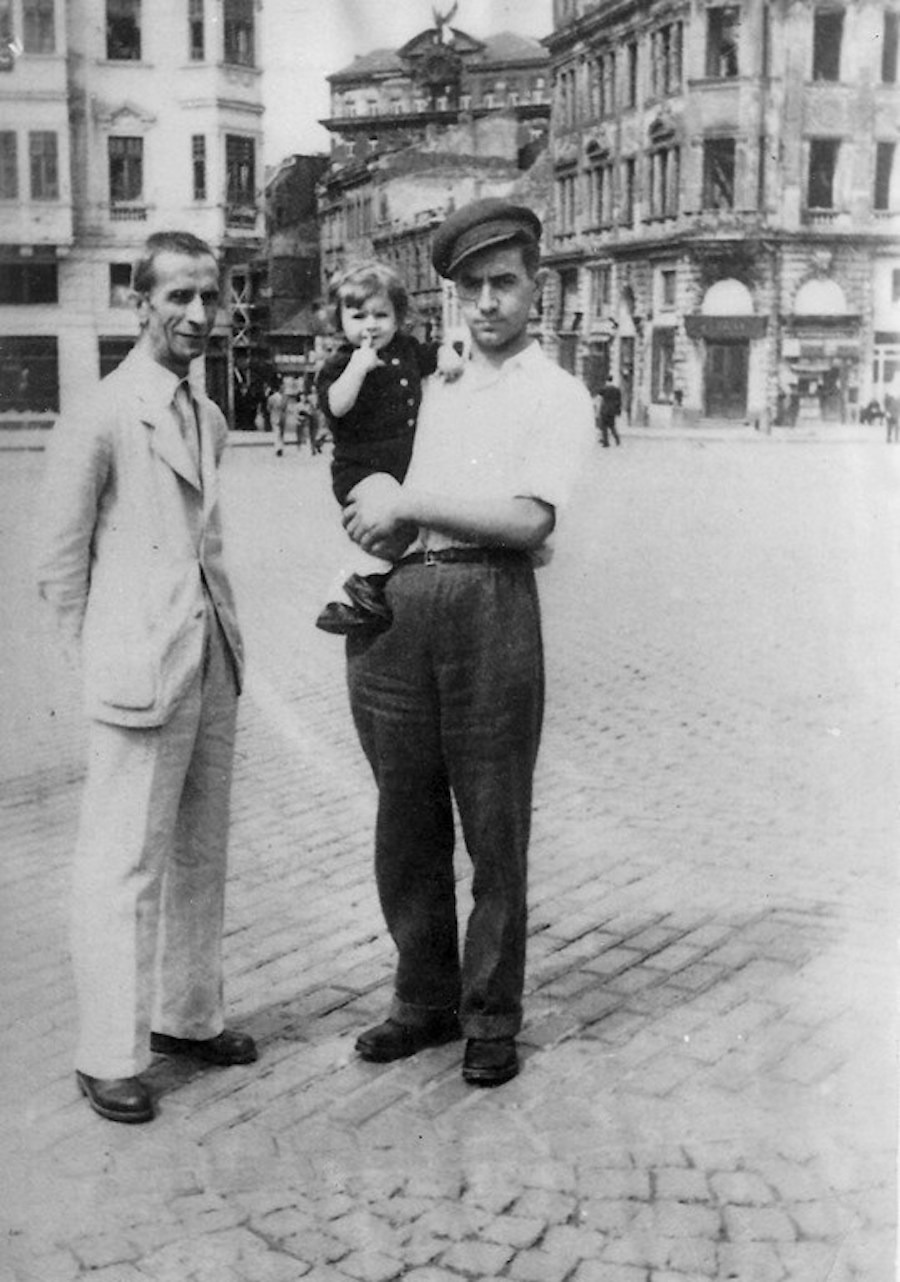 (Богомил Райнов с първородната си щерка Маня и татко си Николай Райнов)