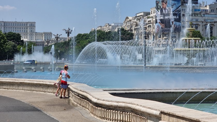 В Букурещ към 14:00 ч. термометрите посочваха 43 градуса на слънце. Жителите и гостите на румънската столица потърсиха хладина към градските фонтани на площад “Унири ”, а някои от тях за малко не отнесоха и санкции, откакто се пробваха да се разхладят във водата.