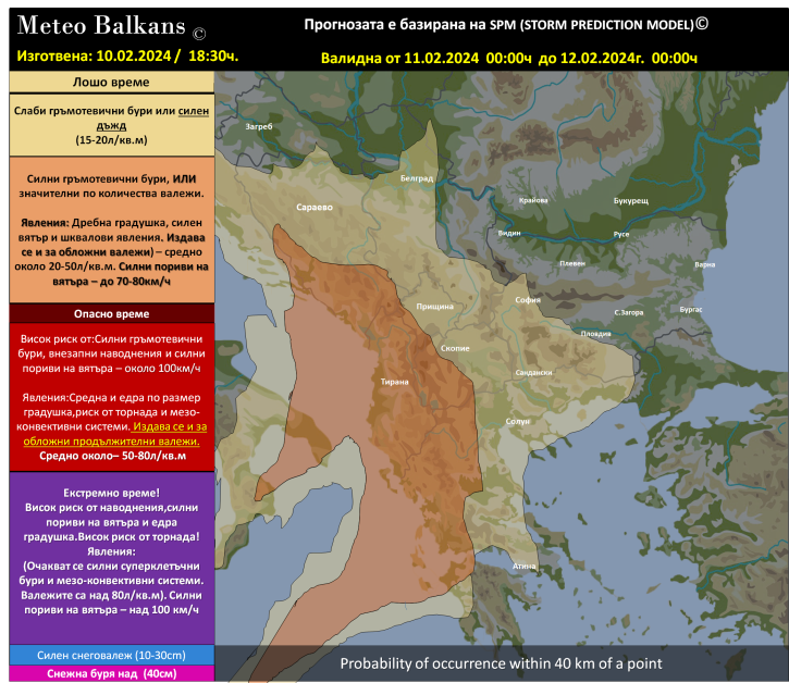 В планините главно в Рило-Родопската област се чакат превалявания, като границата сред дъжд и сняг ще бъде на към 1800-2000 метра. Ще бъде доста прохладно със мощен и плевел вятър с посока от юг-югозапад. Температурите ще се намалят сензитивно и оптималната на височина 1200 метра ще бъде към 8°, на 2000 метра към 2°.
