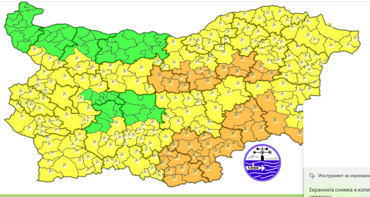 Жълт и оранжев код за рисково време е разгласен през днешния ден в съвсем цялата страна. За Пловдив предизвестието е за мощен вятър с пориви напразно до 90 км/ч., а в регионите с код оранжево над 100 км/ч.