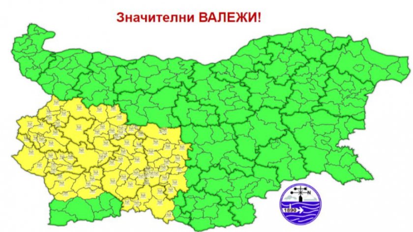 В обособени региони, основно в Югозападна и Централна Южна България, преваляванията ще са интензивни и обилни по количество.