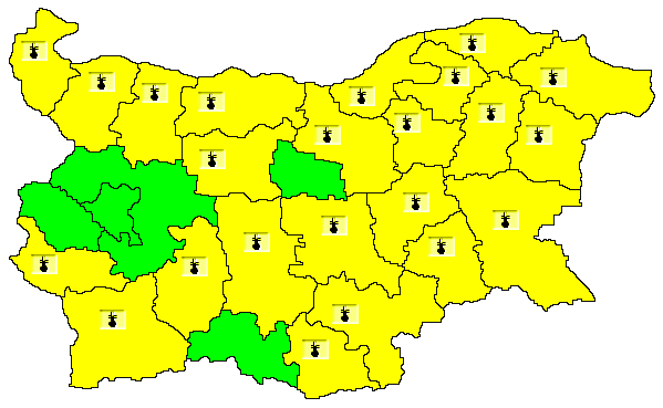Жълт код за горещо време издаде за през днешния ден Националният институт по метеорология и хидрология за 23 области у нас – изключение вършат Перник, София, София-град, Габрово и Смолян.