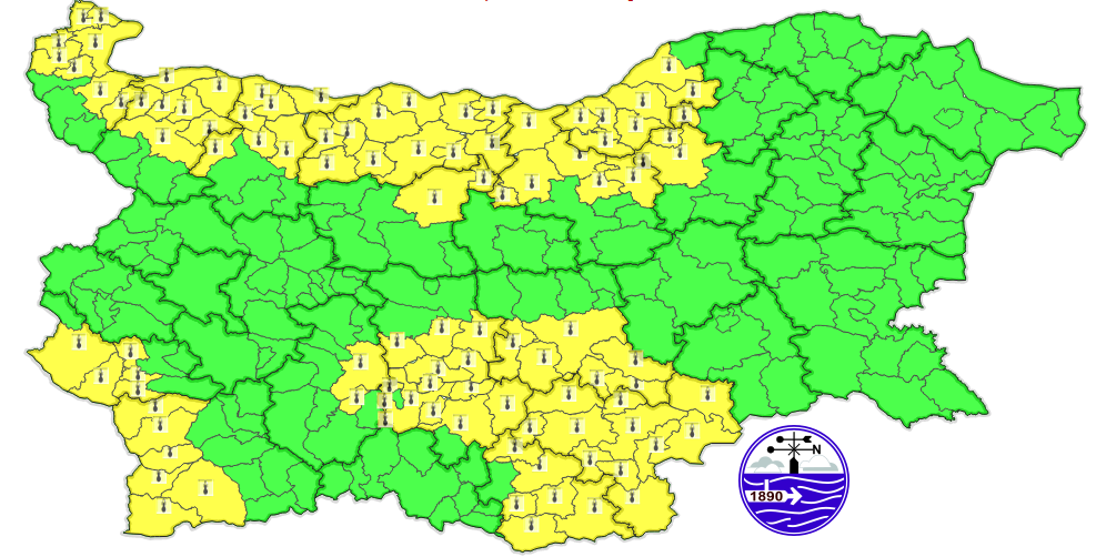 Кодът за рисково време е в действие за областите Видин, Монтана, Враца, Плевен, Велико Търново, Ловеч, Русе, Разград, Кюстендил, Благоевград, Пловдив, Стара Загора, Хасково и Кърджали. Някои от областите ще бъдат единствено отчасти наранени.