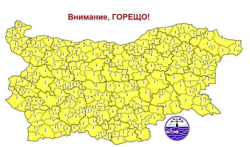 Жълт код за рисково горещо време през днешния ден в цялата страна издаде Националният институт по метеорология и хидрология. Ще е горещо с оптимални температури до 39 градуса, по крайбрежието 31-33.