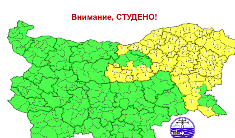 Температурите от тази седмица са най-ниските у нас от началото на този зимен сезон, само че той още не е завършил, сподели за Българска телеграфна агенция Марияна Попова – синоптик от отдела „ Метеорологични прогнози “ на Националния институт по метеорология и хидрология (НИМХ). За 22 февруари, Национален институт по метеорология и хидрология издаде предизвестие от първа степен – жълт код, за студено време в 19 области от страната.