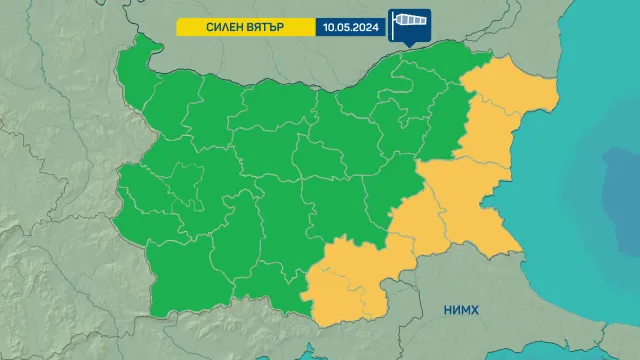 Жълт код за мощен вятър в 6 области от Източна и част от Южна България е разгласен за на следващия ден, 10 май. Той важи за Добрич, Варна, Бургас, Ямбол, Хасково и Кърджали.