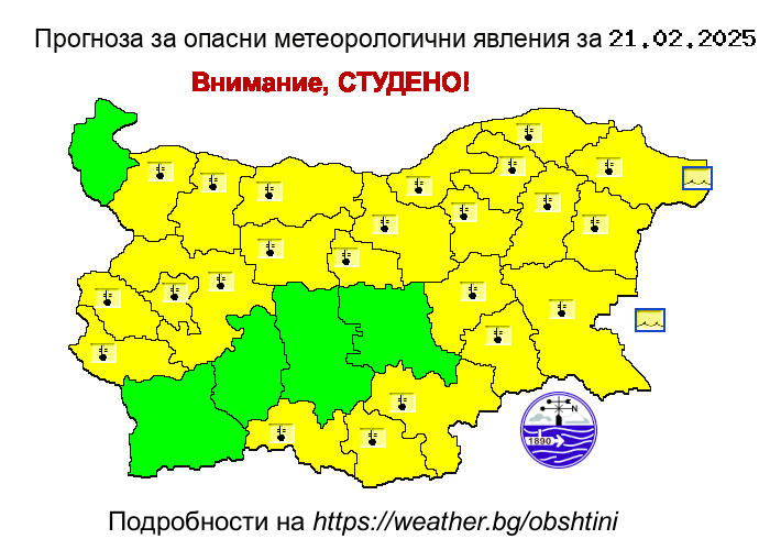 Жълт код за студено време в почти цялата страна, в Пловдив - без предупреждения