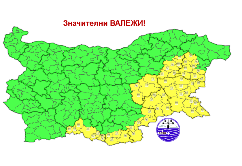 През нощта по-интезивни ще бъдат в Рило-Родопската област, а на следващия ден предизвестие за обилни количества, тук-там до към 35 литра на кв. метър, е оповестено в областите Бургас, Варна, Шумен, Сливен, Ямбол, Хасково, Кърджали и Смолян.