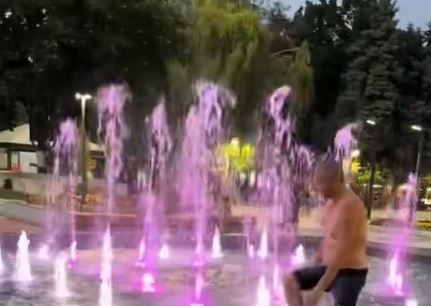 Мъже откриха как да преборят жегата, топнаха се във фонтан ВИДЕО+СНИМКИ