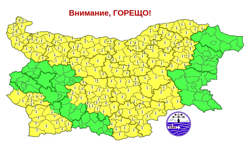 В цялата страна ще бъде слънчево, като в няколко области е в действие код за горещо време. На места ще духа слаб до сдържан, в югоизточните региони и краткотрайно мощен източен вятър. Температурите още малко ще се покачат и оптималните ще бъдат сред 34° и 39°.