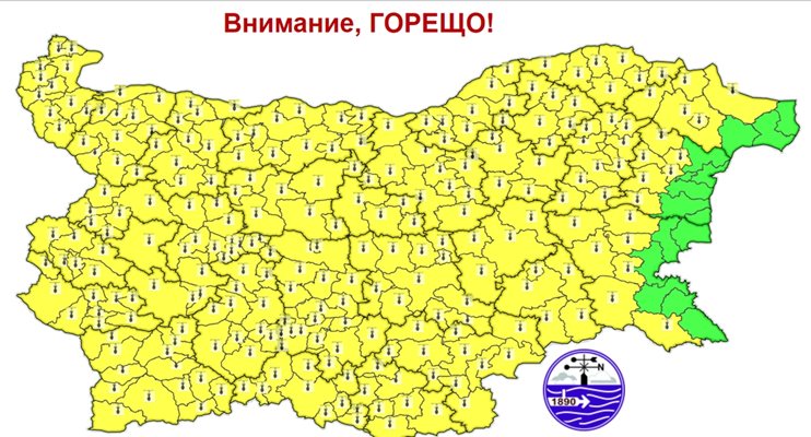 Жегите у нас не престават. И за на следващия ден, четвъртък, има оповестени предизвестия за рисково високи температури. Жълт код е в действие в цялата страна.