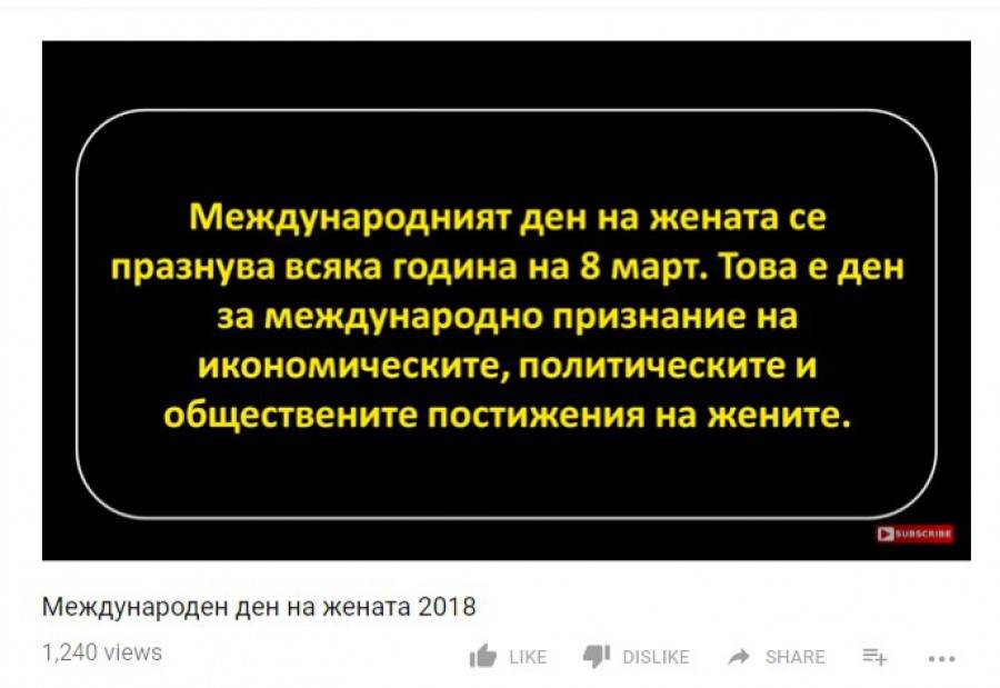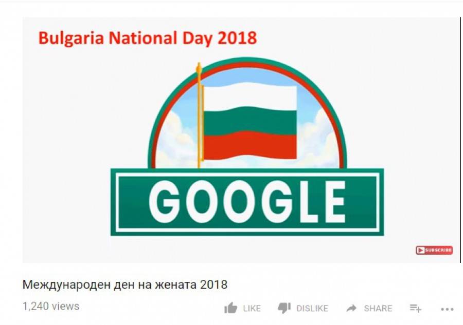 На стартовата страница е изобразен българският байрак, само че линкът препраща към видео с информация за интернационалния ден на дамата 8 март.