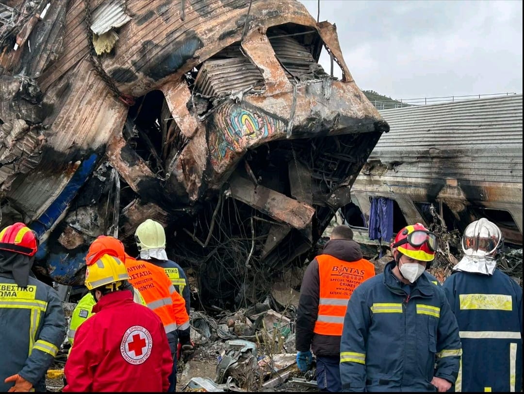 След митингите в Атина, Солун и Лариса, е последвало подаване на оставки . Същевременно към момента има спасители около авариралите вагони, търсейки жертви. Според спасителя Константинос Иманимидис това е бил „ най-трудният миг “ , уточнявайки пред „ Ройтерс “, че „ вместо да избавят животи, би трябвало да извличат тела “.