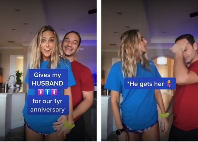В споделено от тях видео се вижда по какъв начин двойката изпада в еуфория, когато тя му оповестява новината, че ще вършат тройка.
