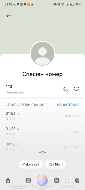 Тя прикачи и скрийншот на повикванията към тел. 112.