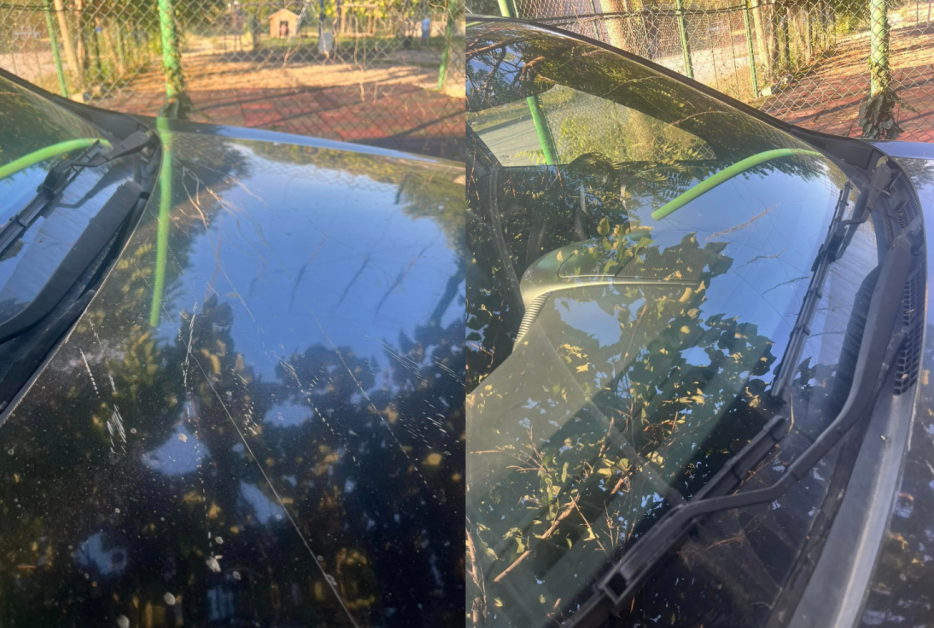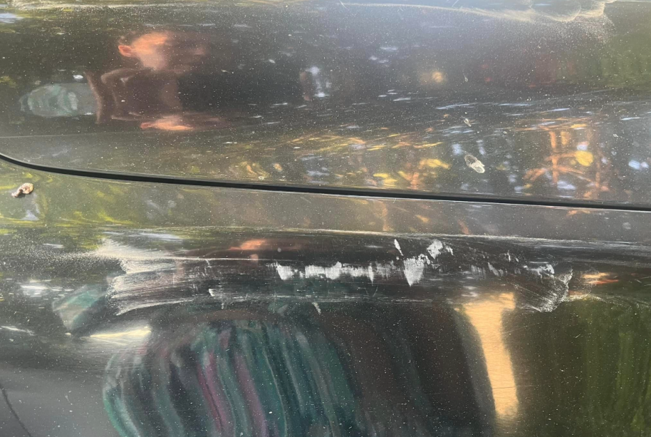 Жената показа фотоси на потърпевшия ѝ автомобил. На фрагментите се вижда следи от драскане по капака, предното стъкло и други части на автомобила.