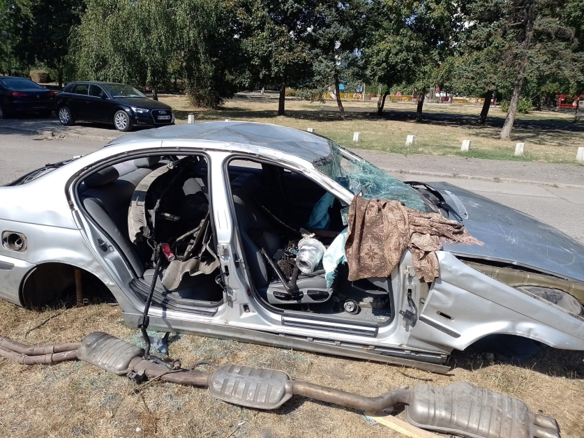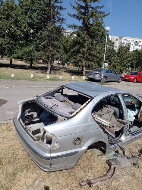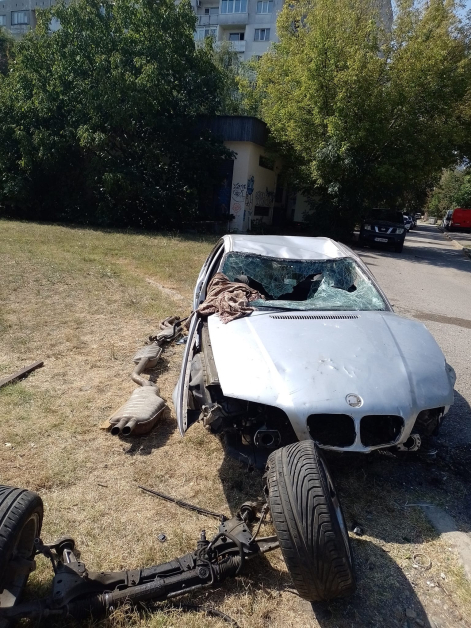 Жена показа в обществените мрежи фотоси на изпочупен и разрушен автомобил с марка " БВМ " върху зелени площи в столичния квартал " Младост 2 ", до трафопоста до блок 227, откъм парк " 120 години София ".
