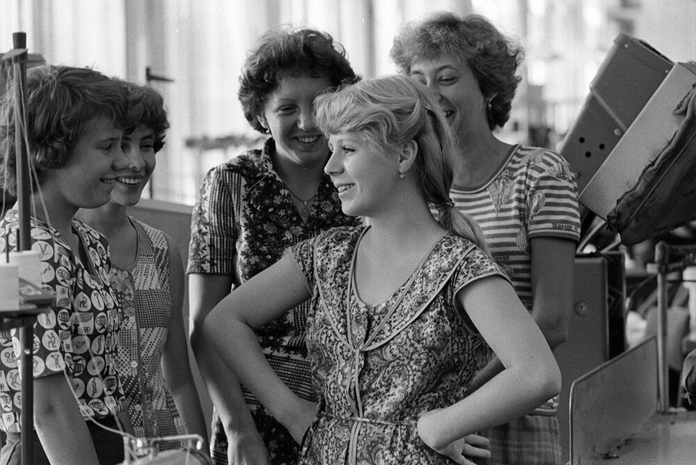 Жените в Съюз на съветските социалистически републики може да работят във заводи и фабрики, да бъдат дойки или даже военни водачи, само че без значение каква е работата им – всички те обичат да се обличат стилно, изключително в кадифени тъкани с цветни щампи.