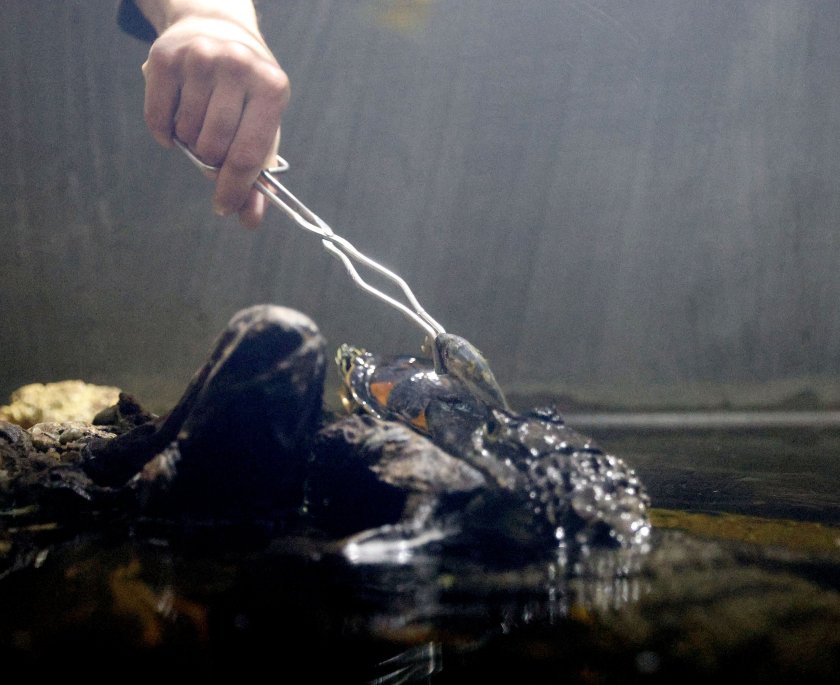 Женски очилат кайман е новият жител на Аквариума във Варна. Влечугото още няма име, само че се усеща добре и с ненаситност приема за храна дребни рибки.