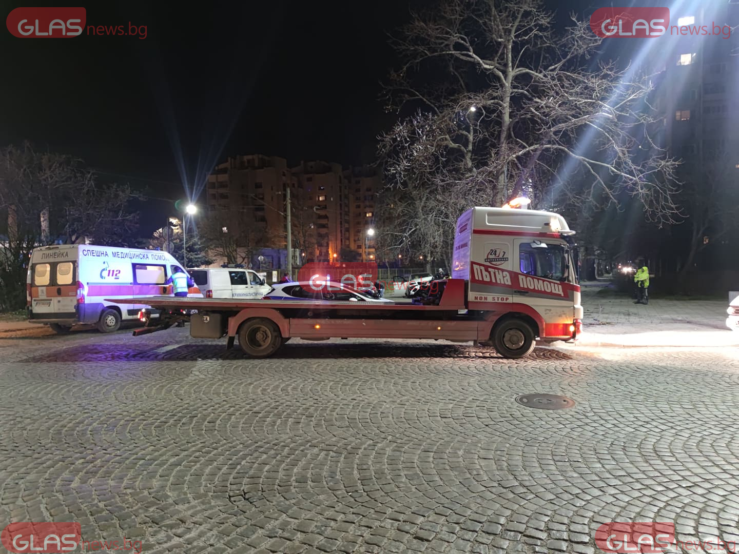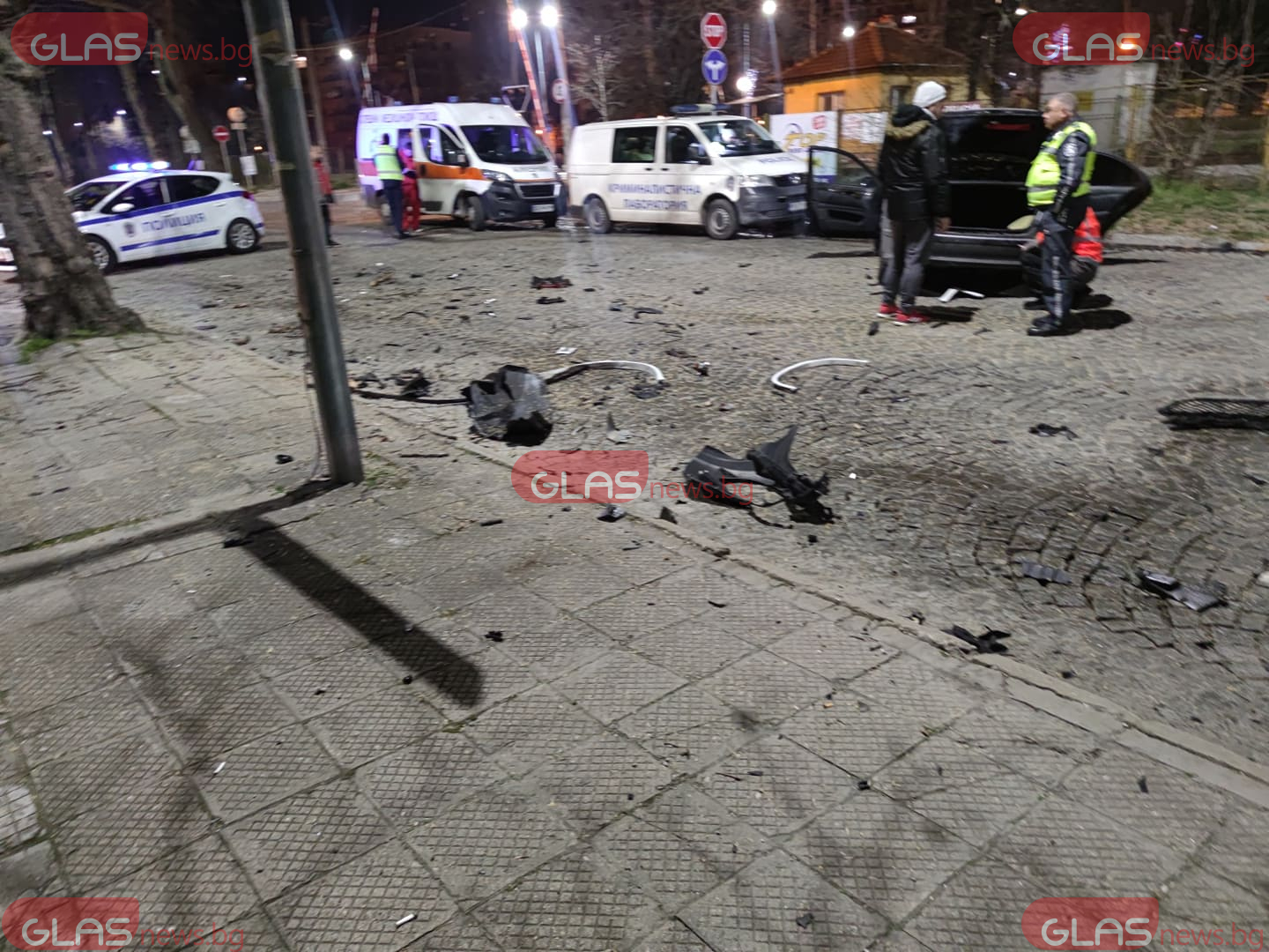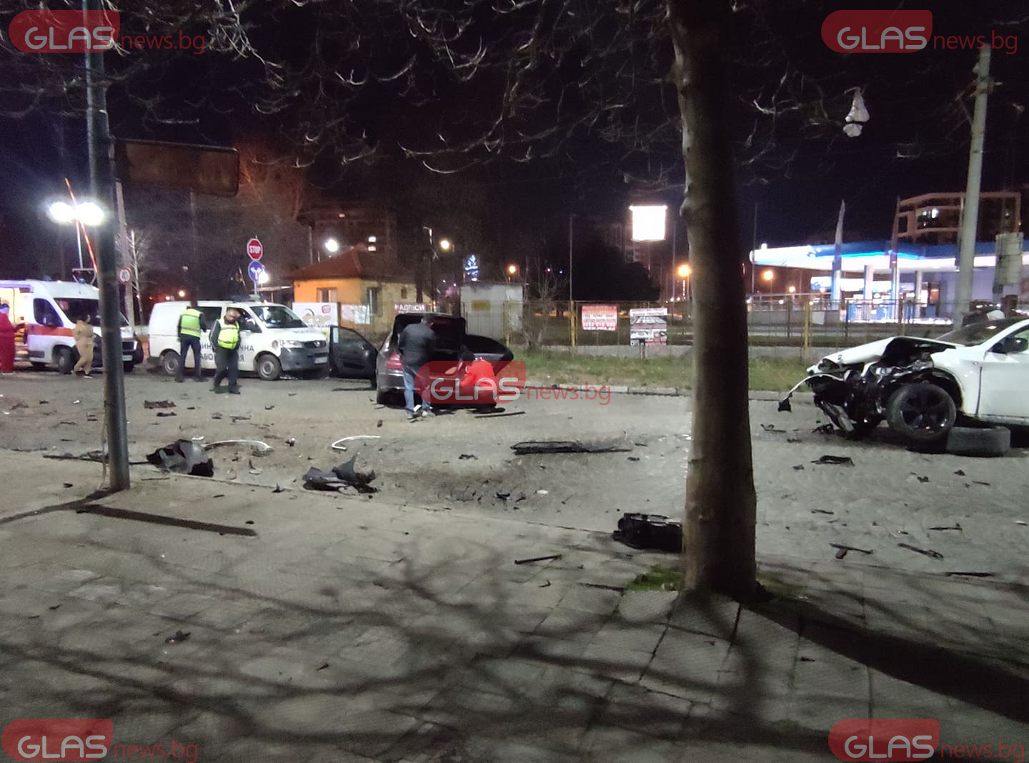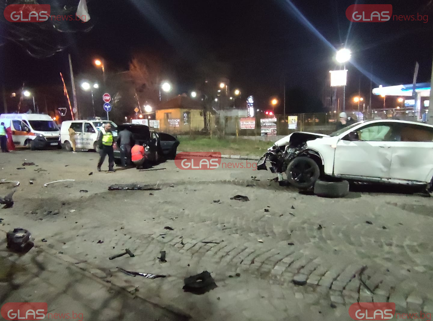 Цялото източно платно е осеяно с елементи от колите. На място са екипи на полицията, Бърза помощ, Криминалистична лаборатория, както и три коли на Пътна помощ. В момента две девойки са в автомобила на Криминалистична лаборатория. Медицински екип преглежда на място в колата за спешна помощ един от пасажерите.
