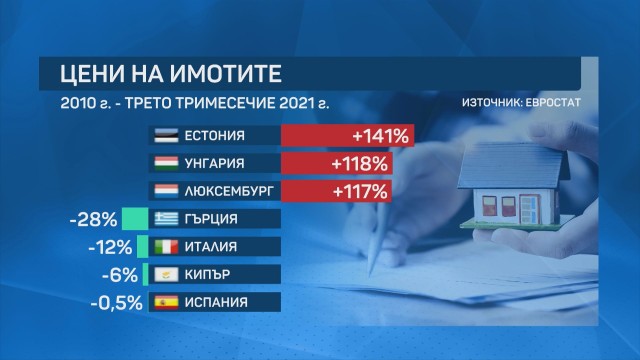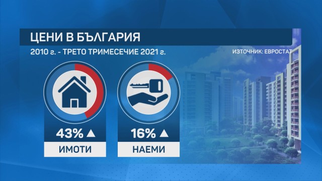 Жилищата в България не престават да нарастват, регистрира Евростат.