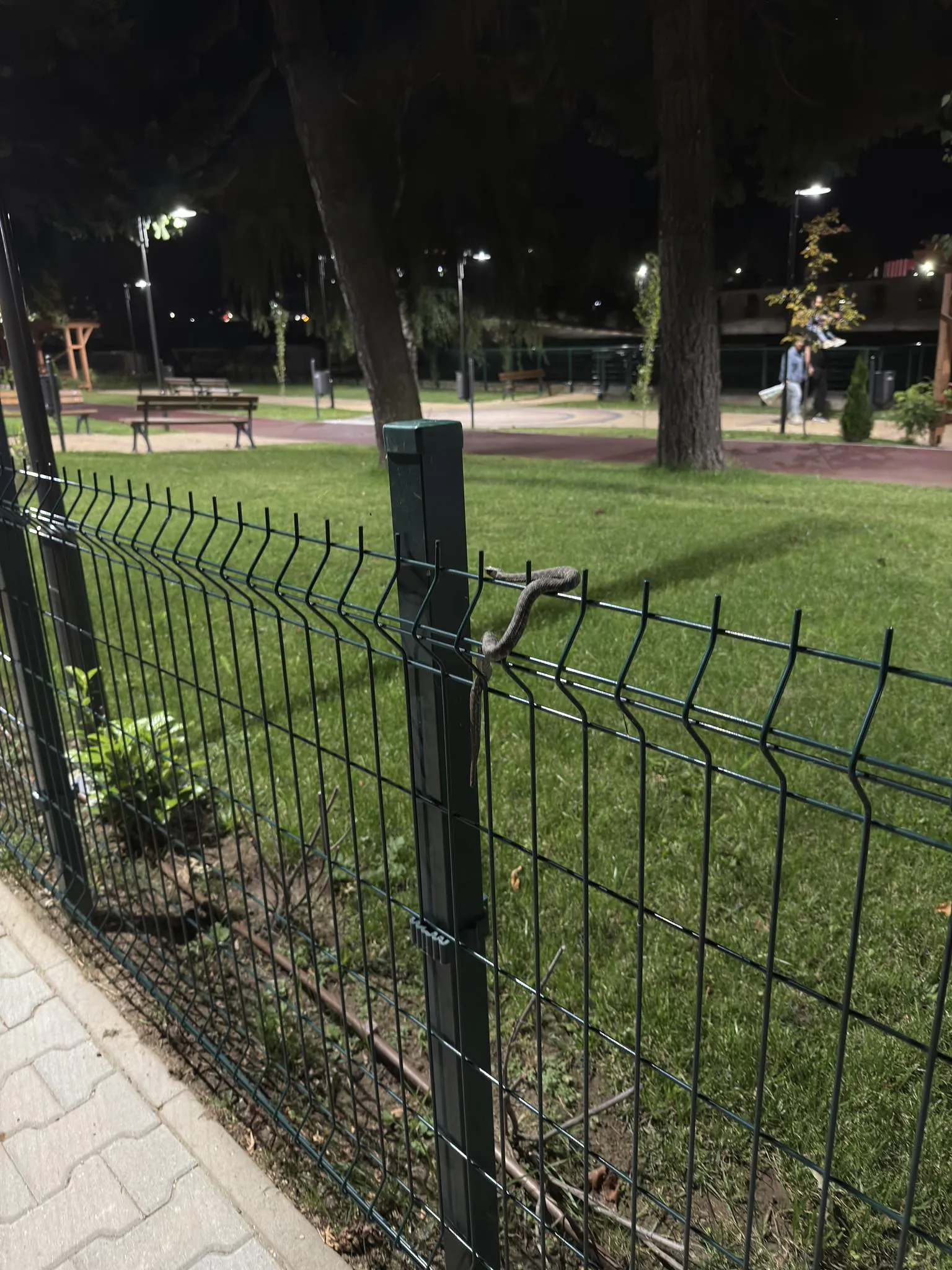 Жител на Самоков предизвести съгражданите си да бъдат деликатни при разходки в новата част на градския парк, откакто забелязал змия върху ограда.