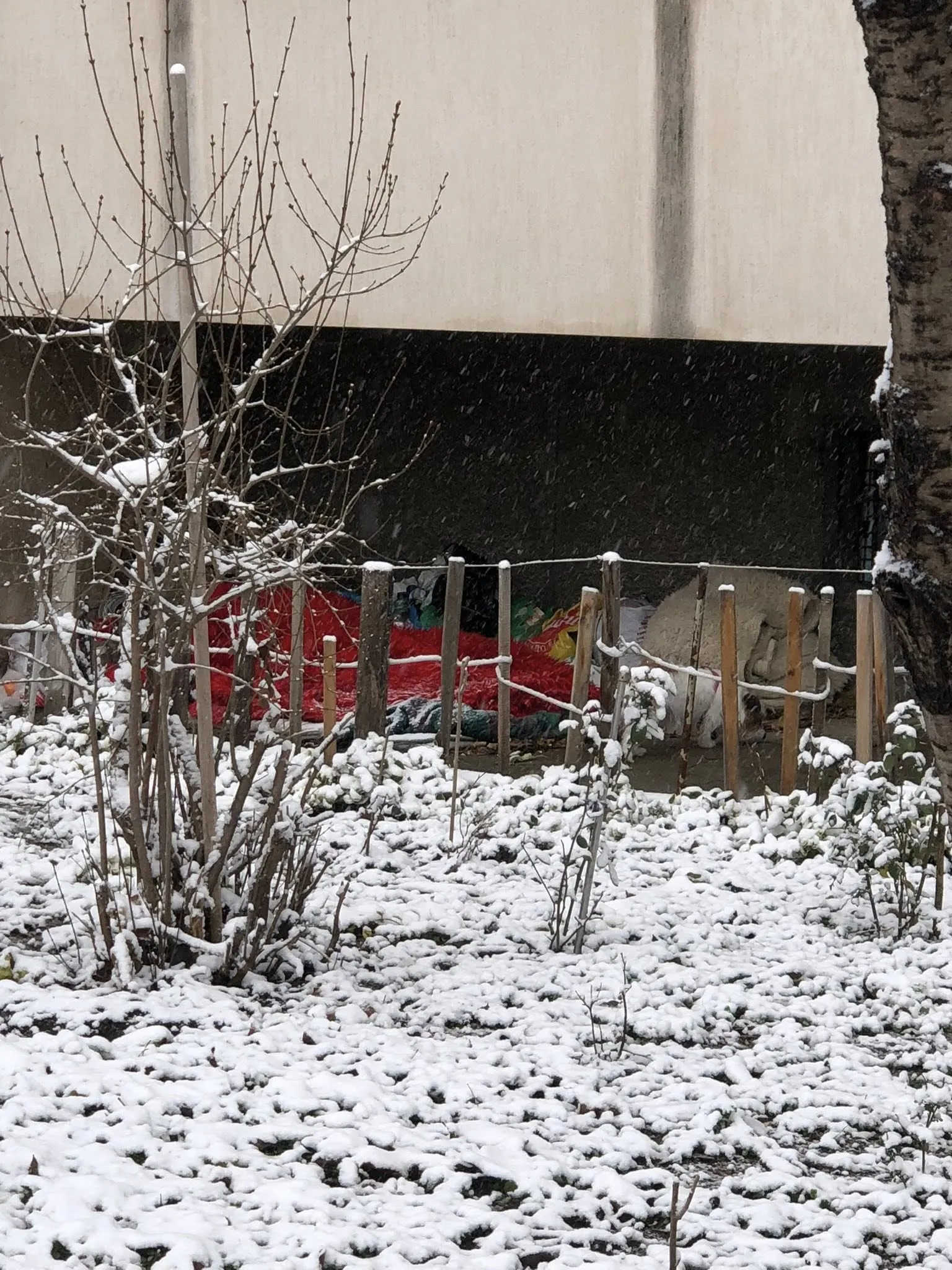 По думите му стара жена от месеци живее навън, като нощува под балкон на жилищен блок №517, в региона на така наречен „ Райска градинка “. Жената е без дом и се пробва да се защищити от студа само с одеяла. С настъпването на зимата и понижаването на температурите рискът за здравето и живота ѝ става все по-сериозен.