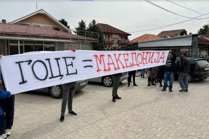 " Гоце е Македония ", " Ръцете ти са кървави ", " Кога ще признаеш, че в България има македонци? ", " Гробищата са цялостни с българско другарство ", бяха надписите на единствено част от транспарантите.