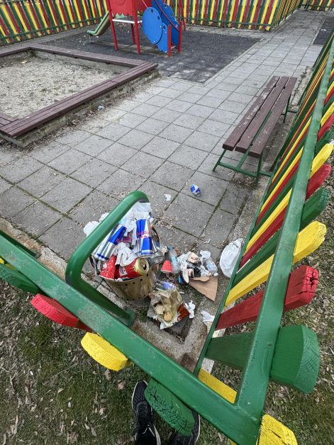 Бира и енергийни напитки до детска площадка: Препълнено кошче буди недоумение