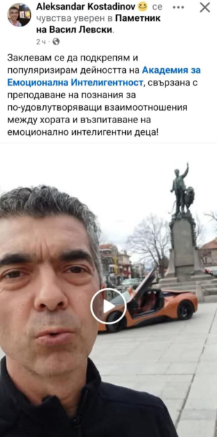 Чрез видеото Костадинов прави реклама на новосъздаден клуб за личностно изразстване в Карлово. Мъжът се е тагнал от паметника и е отбелязал в обявата си, че " се усеща убеден ". Не е ясно защо именно по този метод е решил да популялизира активността на клуба, само че фрагментите провокираха бурни реакции в обществената мрежа Фейсбук. Проверка на GlasNews откри, че видеото е изтрито от профила му, само че възмутени жители разпространиха скрийншот, който поддържа полемиката жива.