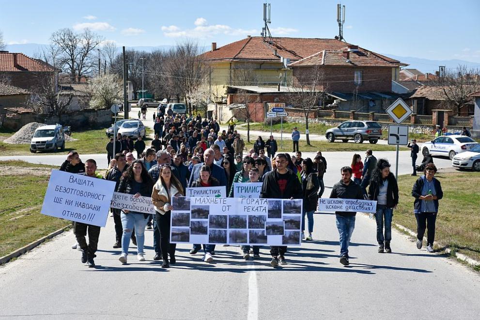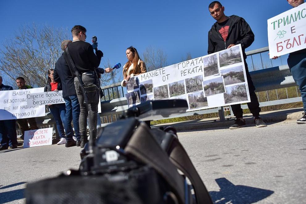Жители протестираха в Трилистник с искане да се почисти и укрепи коритото на река Стряма