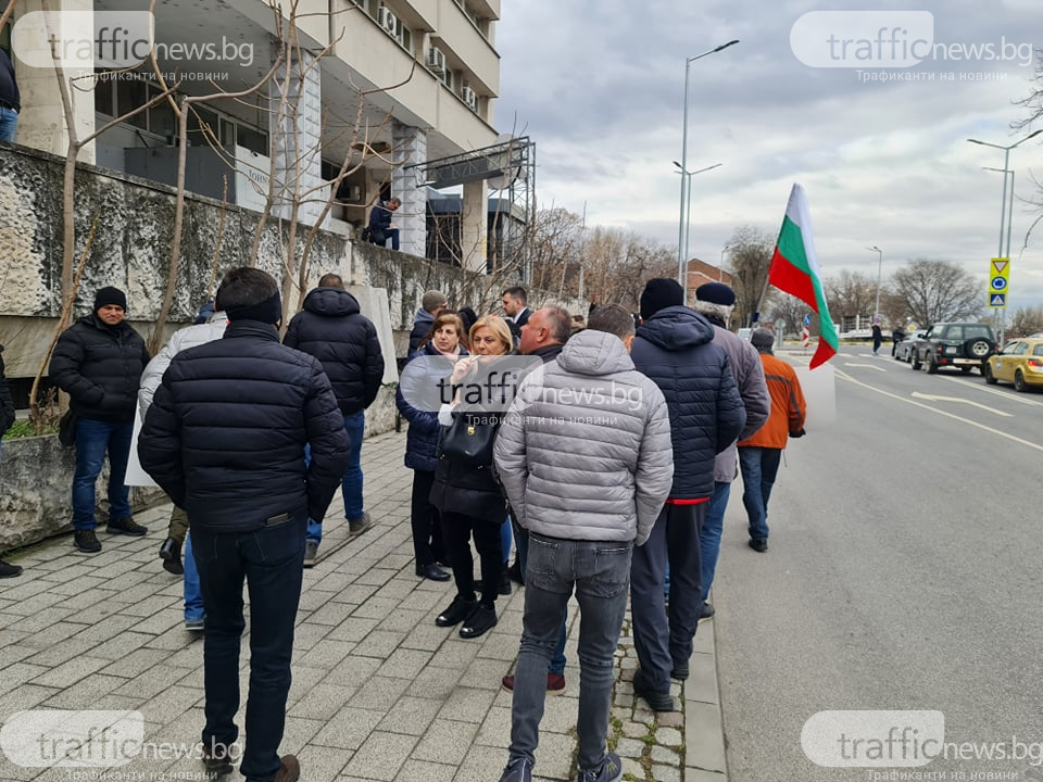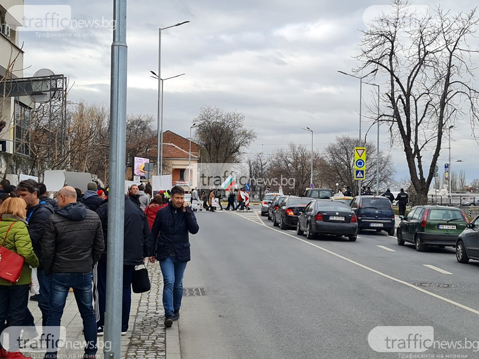 Жителите на Белащица, които се събраха пред Регионална инспекция за опазване на околната среда с искане за оставката на шефа, блокираха кръстовището на Водната палата. В колона, те пресичат бул. " Марица " на пешеходната пътека до Колелото и по този метод не разрешават на колите да преминат. В региона се образуваха огромни колони, водачи се пробват да излязат от задръстването като обръщат на платното.