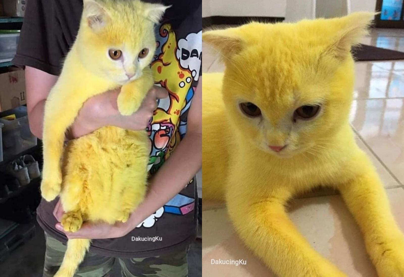 Козината на опашатия палавец станала блестящо жълта, като че ли той бил брат на анимационния воин Пикачу.